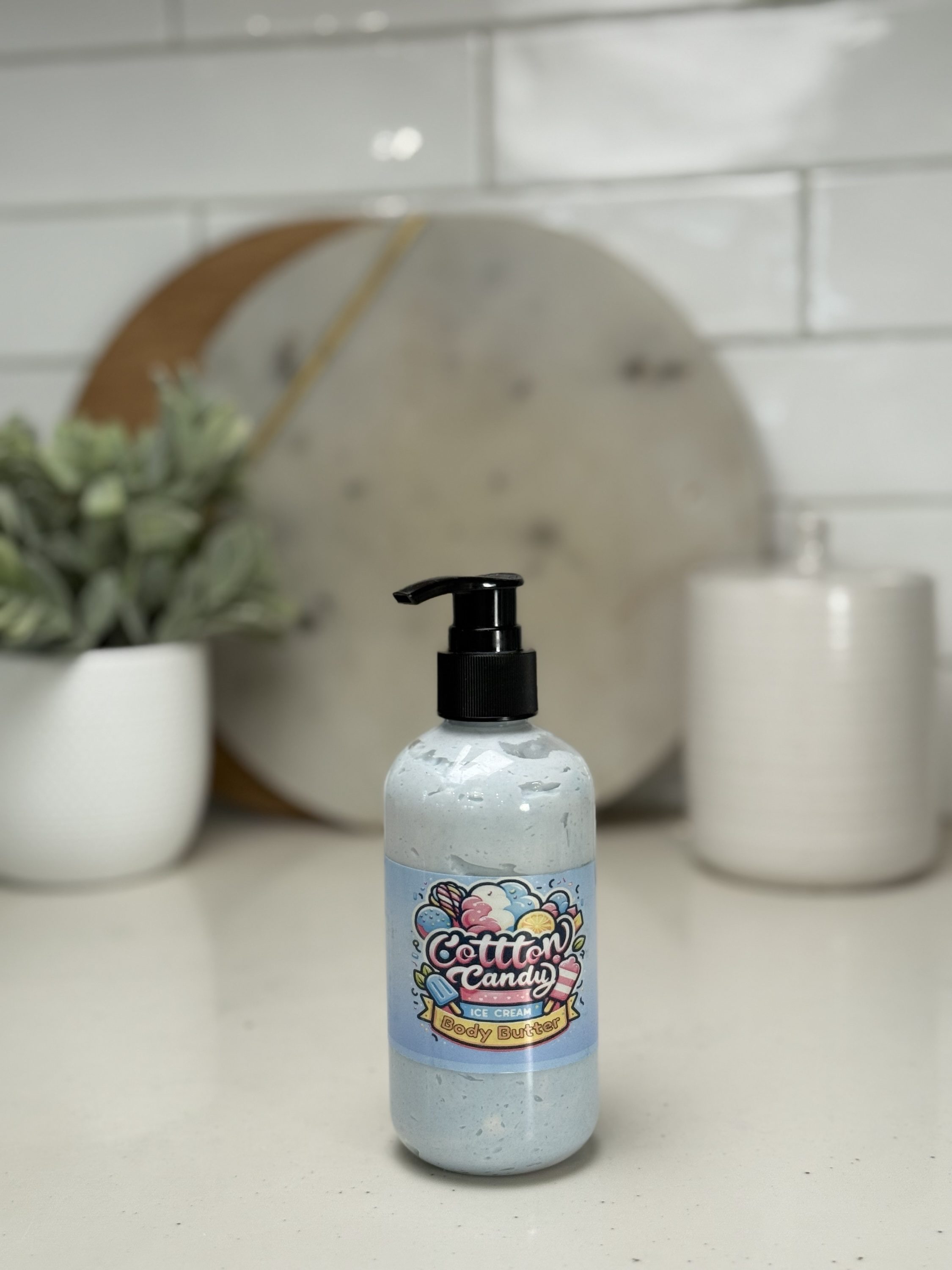 Experience a sweet escape with our 7oz Cotton Candy Body Butter, one of our most popular scents! This luscious, creamy formula glides effortlessly onto your skin, delivering deep hydration and a silky-smooth finish. Infused with the nostalgic aroma of fluffy cotton candy, it wraps you in a cloud of sweetness, reminiscent of carnival days and carefree moments.